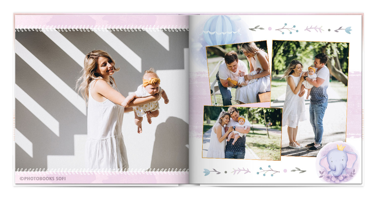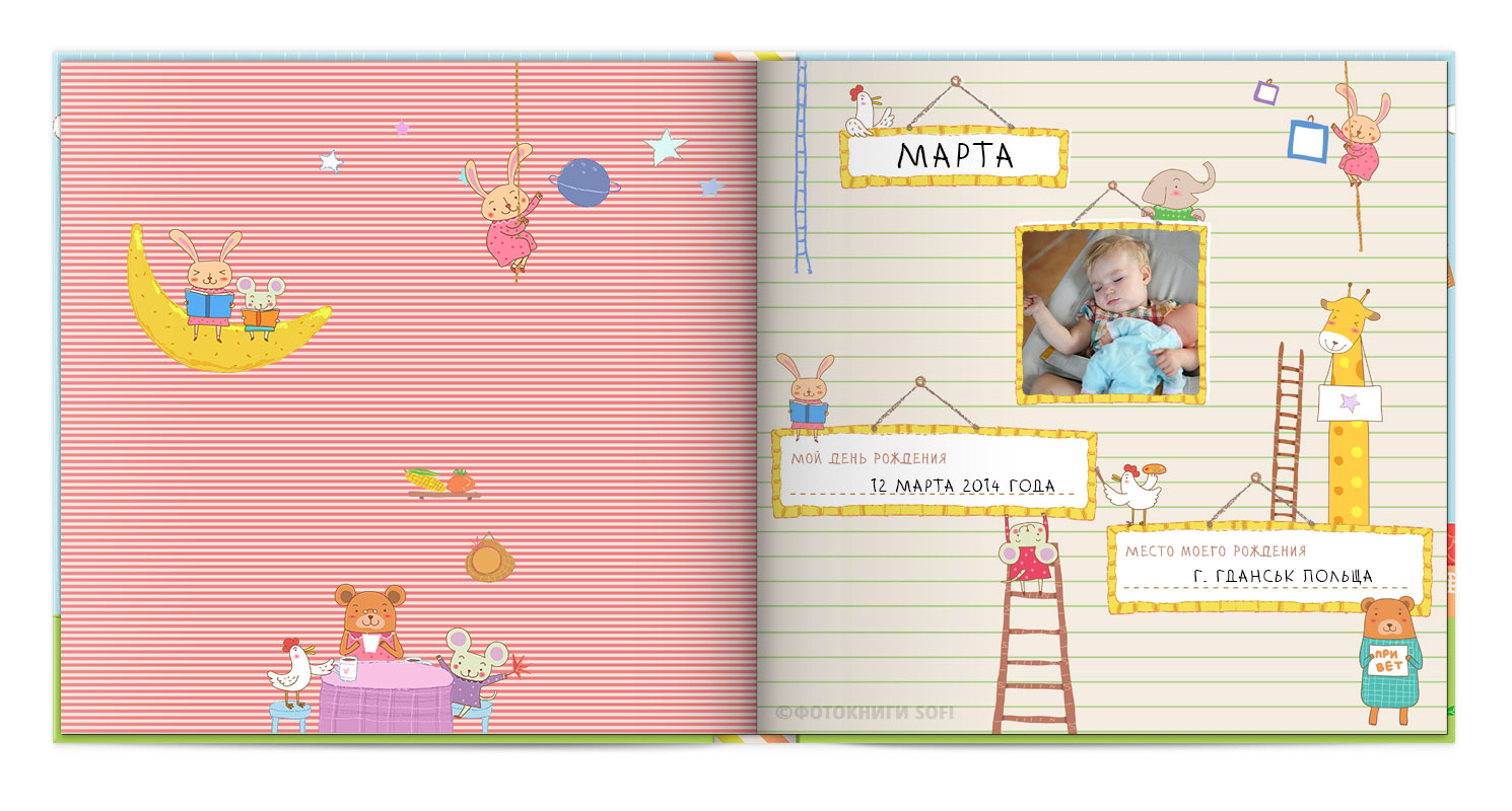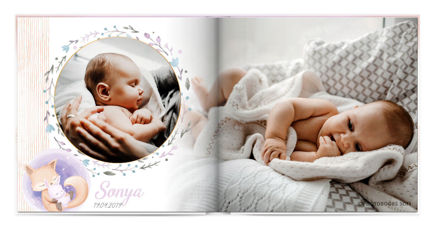 Щаслива історія життя малюка: перша посмішка, перші кроки і багато цікавих моментів в красивій фотокнизі.