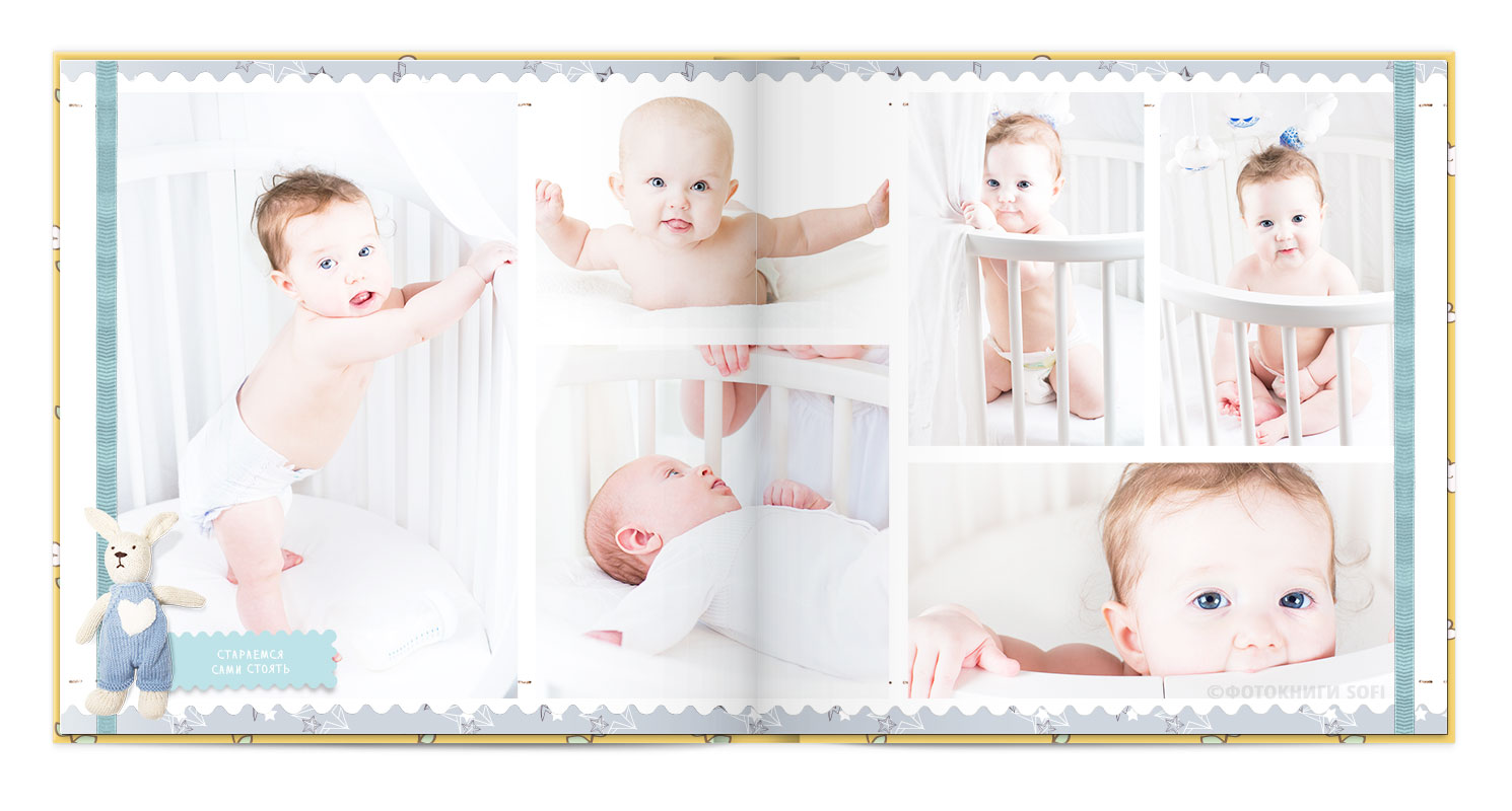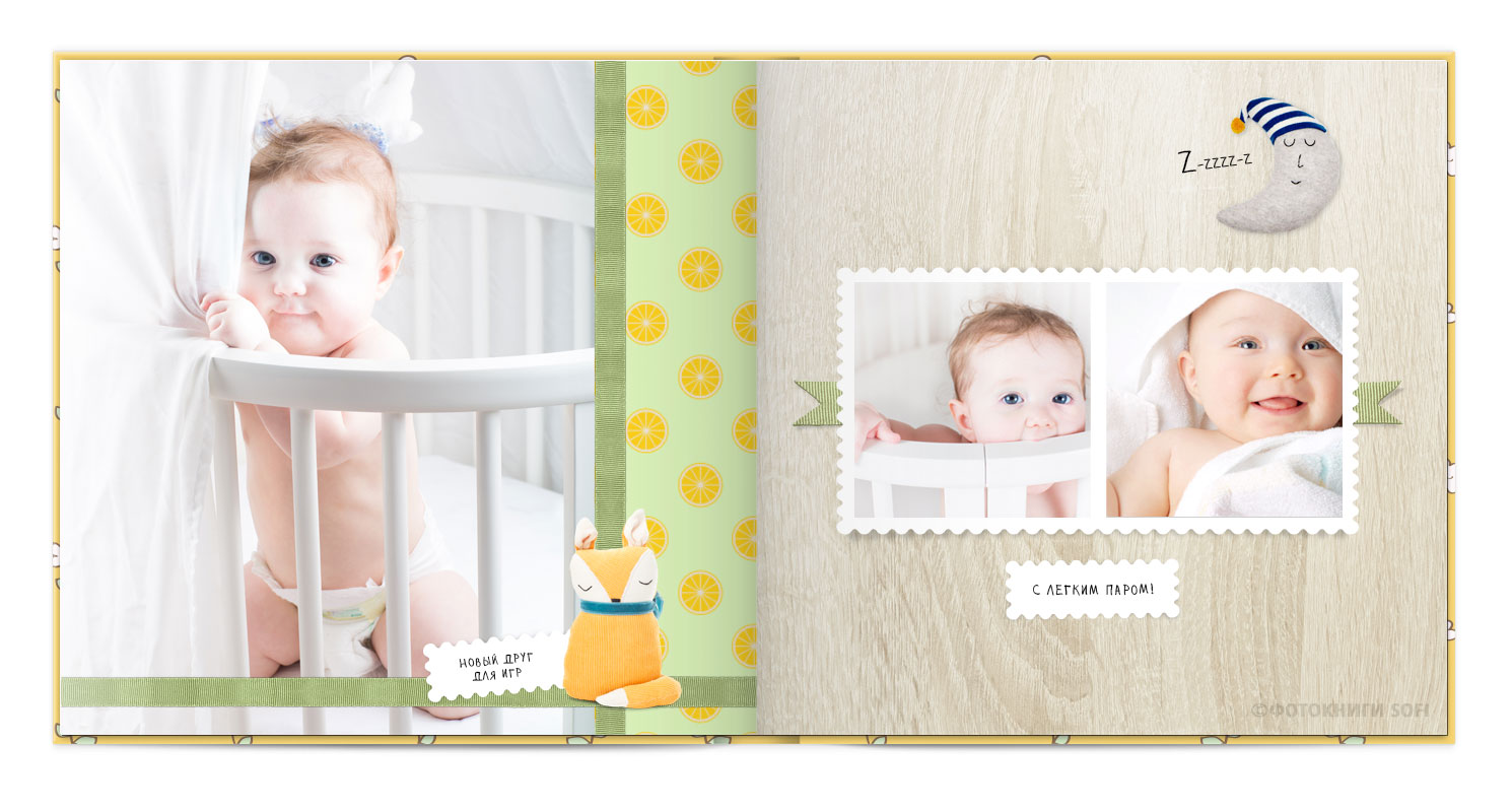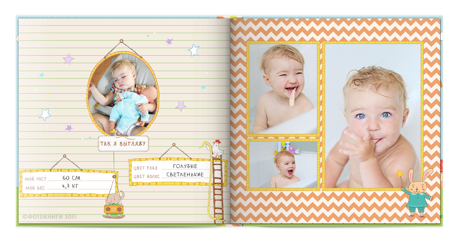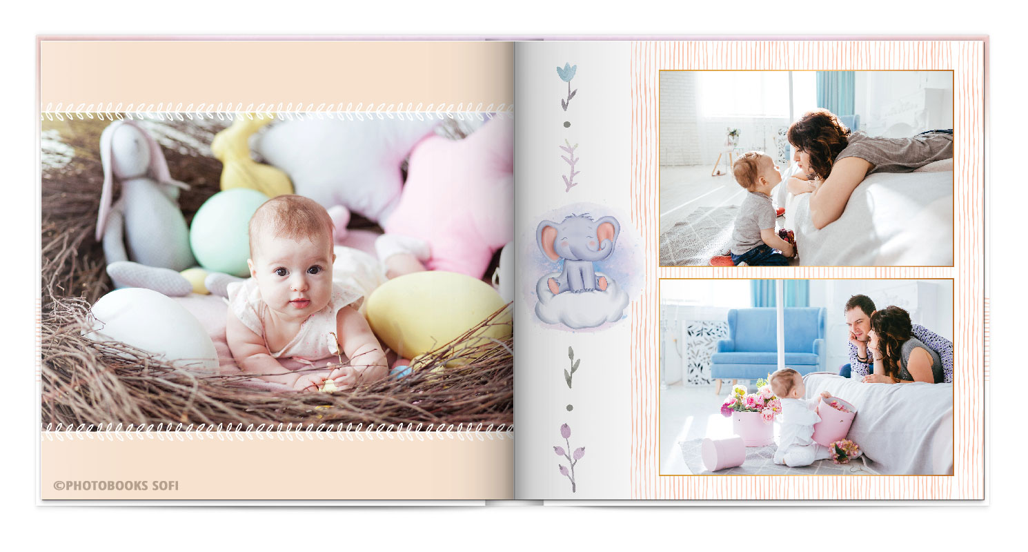 Щаслива історія життя малюка: перша посмішка, перші кроки і багато цікавих моментів в красивій фотокнизі.