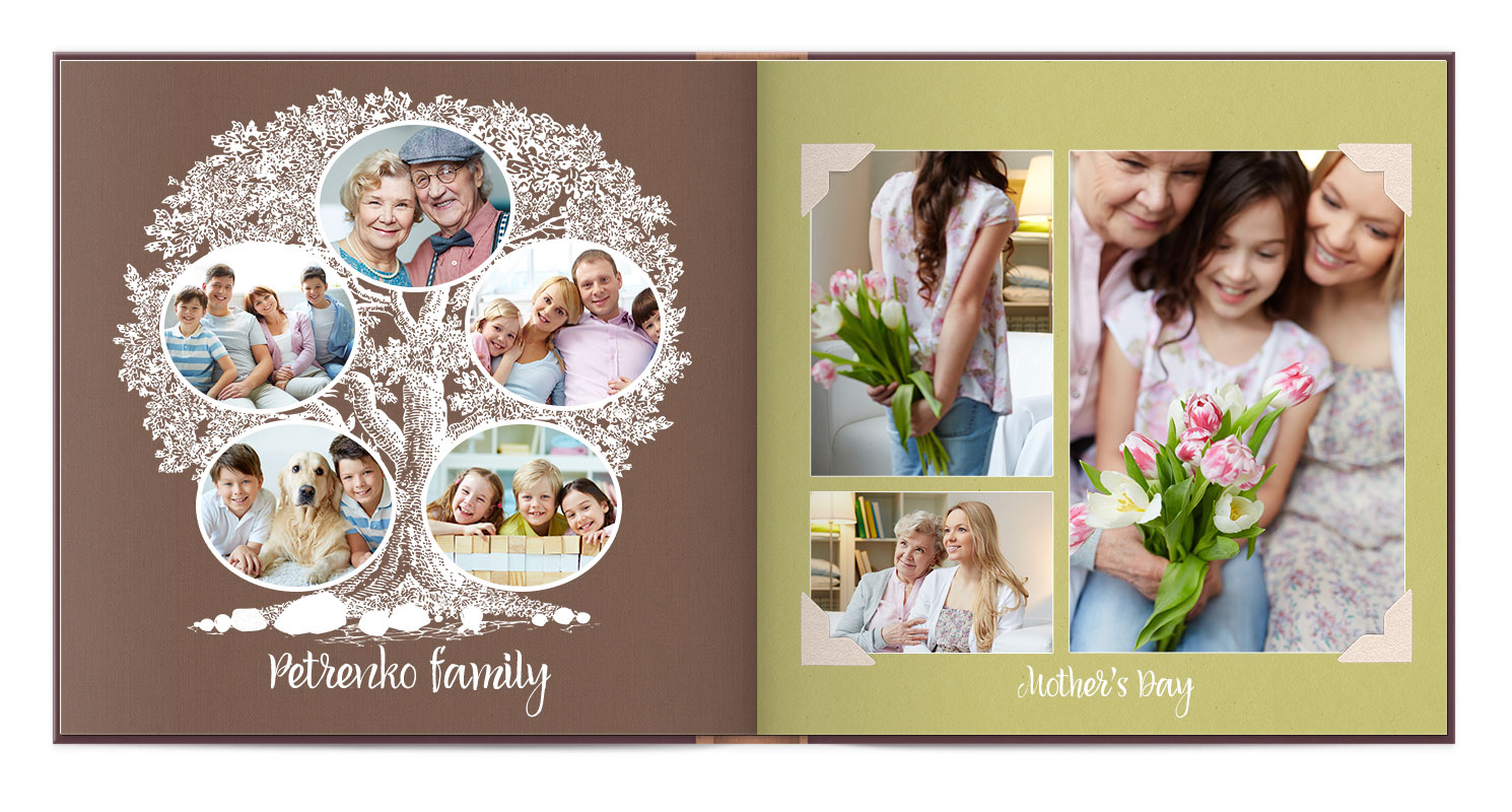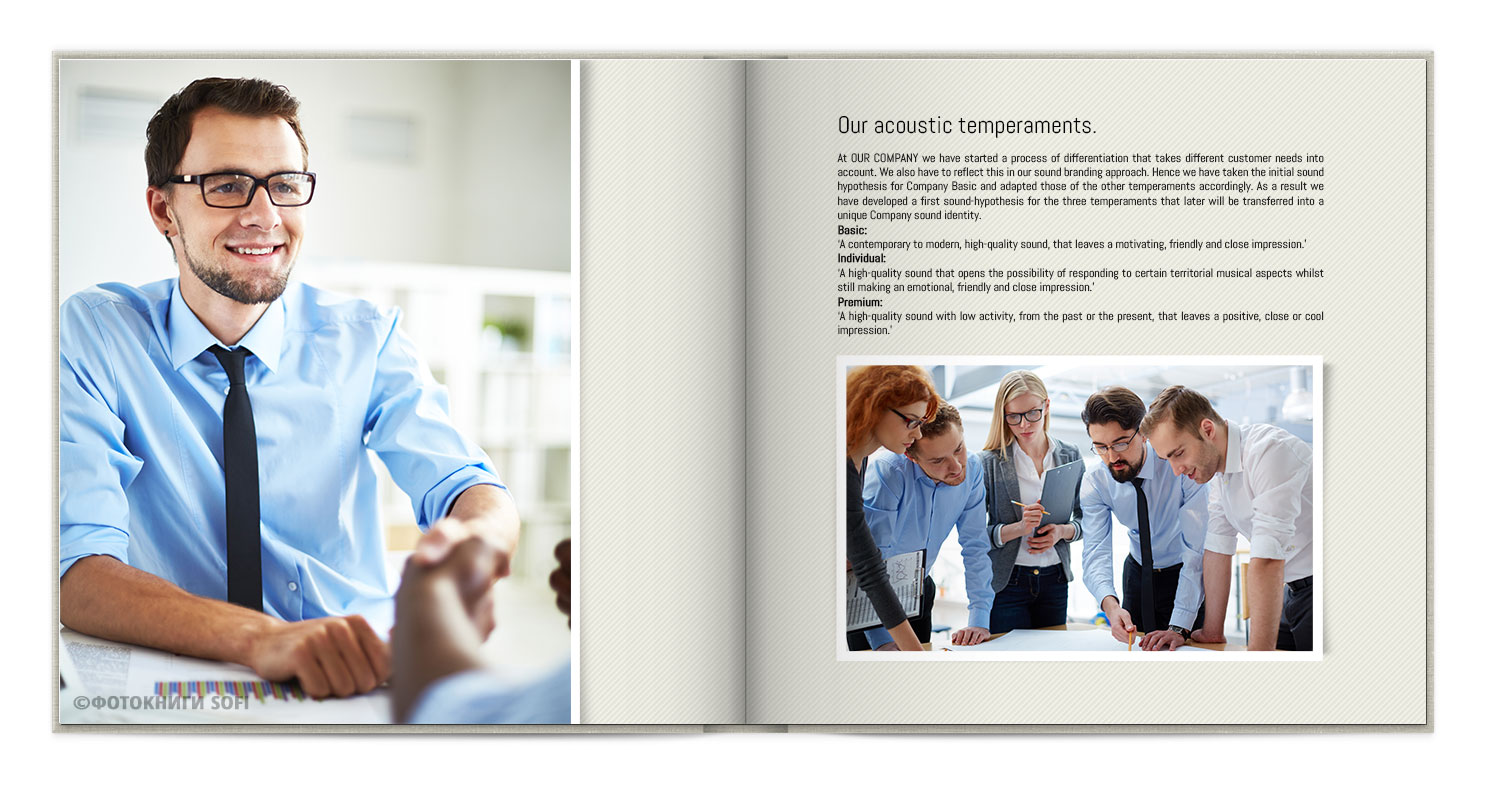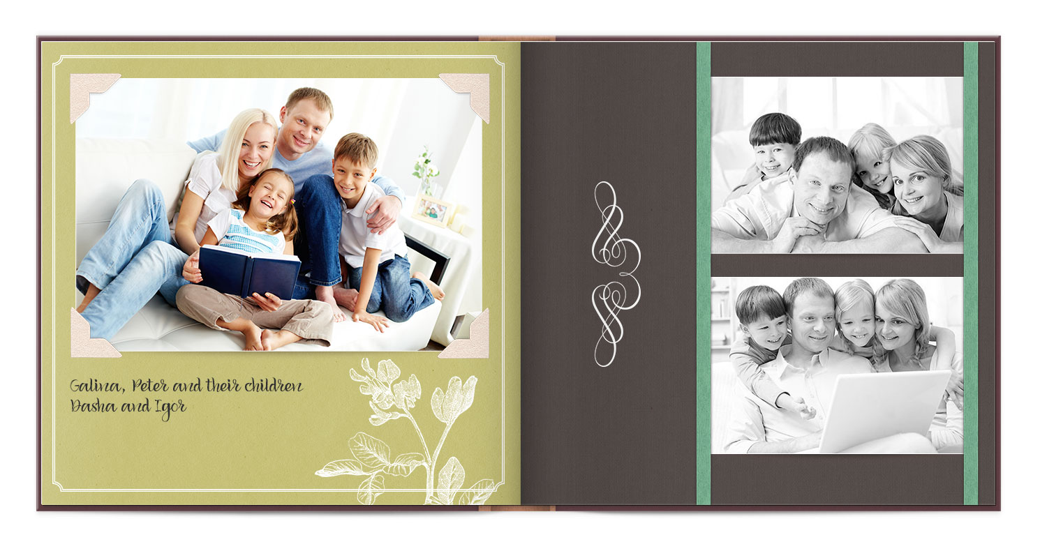 В фотокнигах використовується фотодрук на преміальному фотопапері та твердий, зносостійкий варіант палітурки